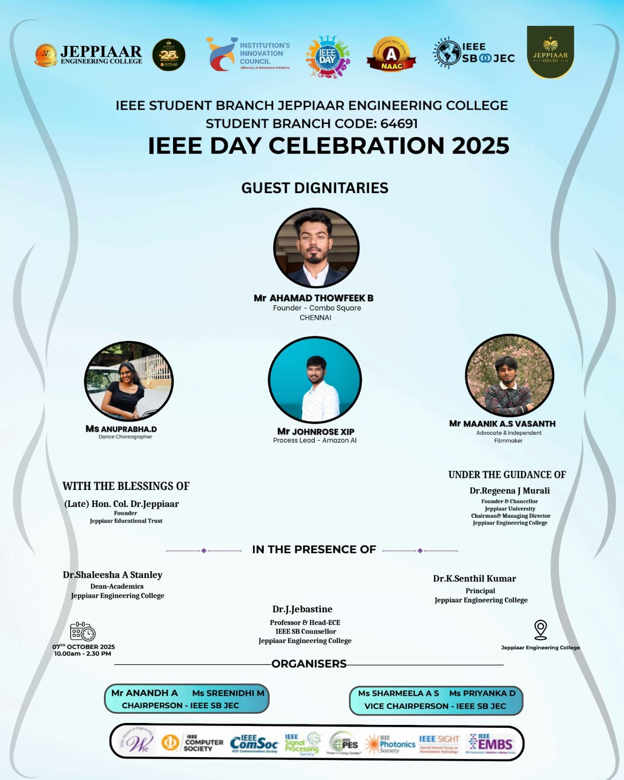 Jeppiaar Engineering College aims at the complete development of the student and our staff is hand-picked and trained to ensure that the students are given every possible support in all their pursuits, academic or personal.