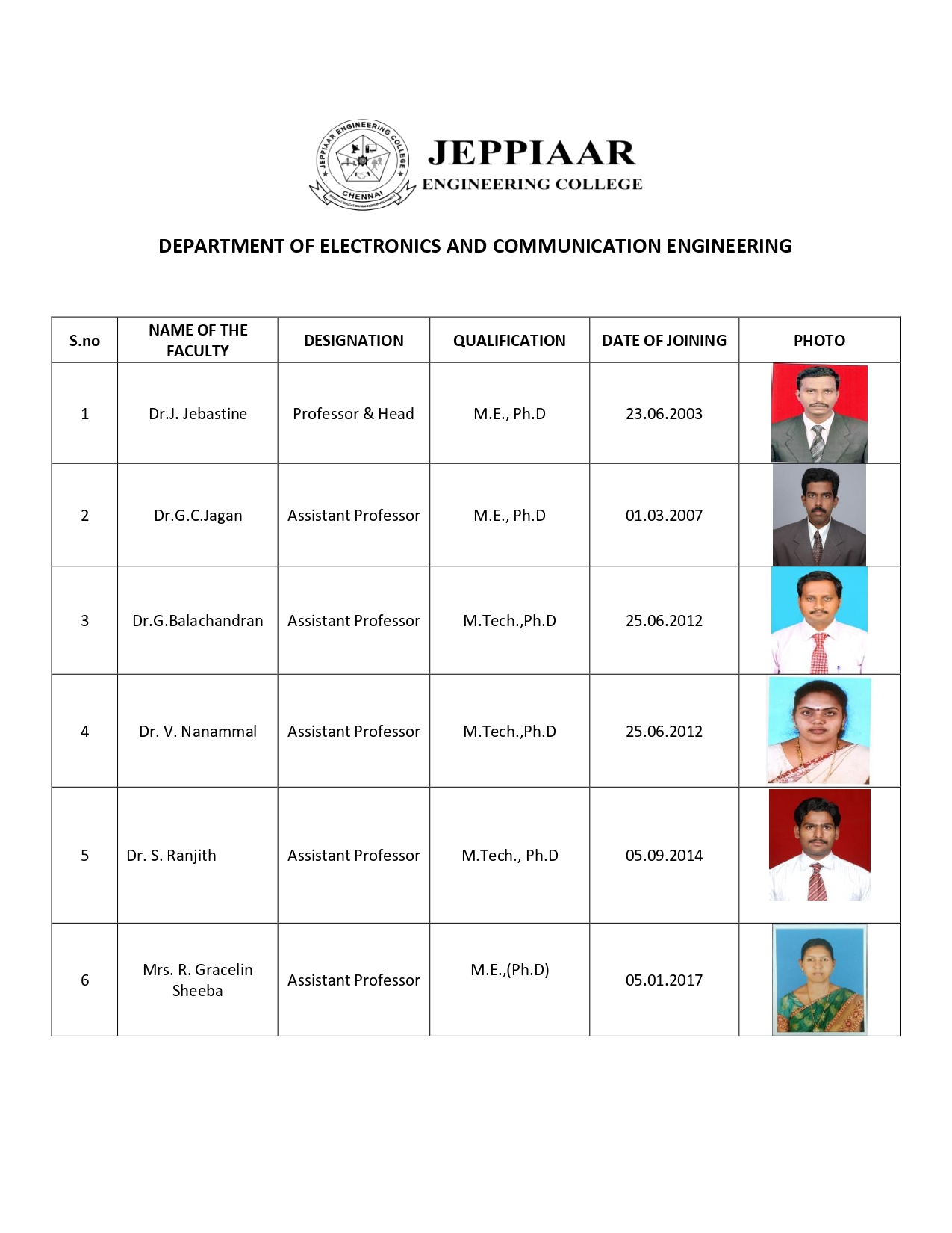 Dr. J.JEBASTINE., M.E, Ph.D